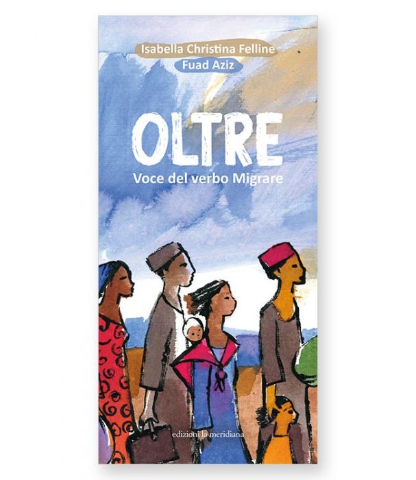 Oltre. Voce del verbo migrare è un leporello illustrato arricchito dalla preziosa illustrazione di Fuad Aziz. Le pieghe delle pagine rivelano un testo poetico, a firma di Isabella Christina Felline, che racconta la migrazione per mare, il viaggio nel buio con la speranza di raggiungere una nuova terraferma. Sul retro, il componimento poetico è tradotto nelle lingue del mediterraneo: spagnolo, inglese, francese, albanese, serbo-croato, portoghese, arabo.